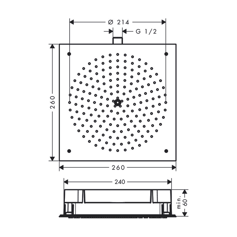 - shower head size: 260 x 260 mm